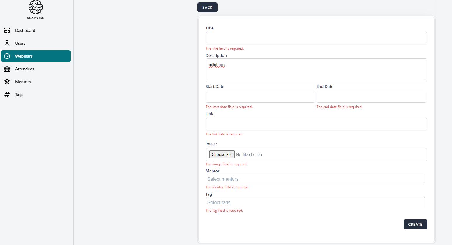 3. Navigate to the Webinars page from admin dashboard