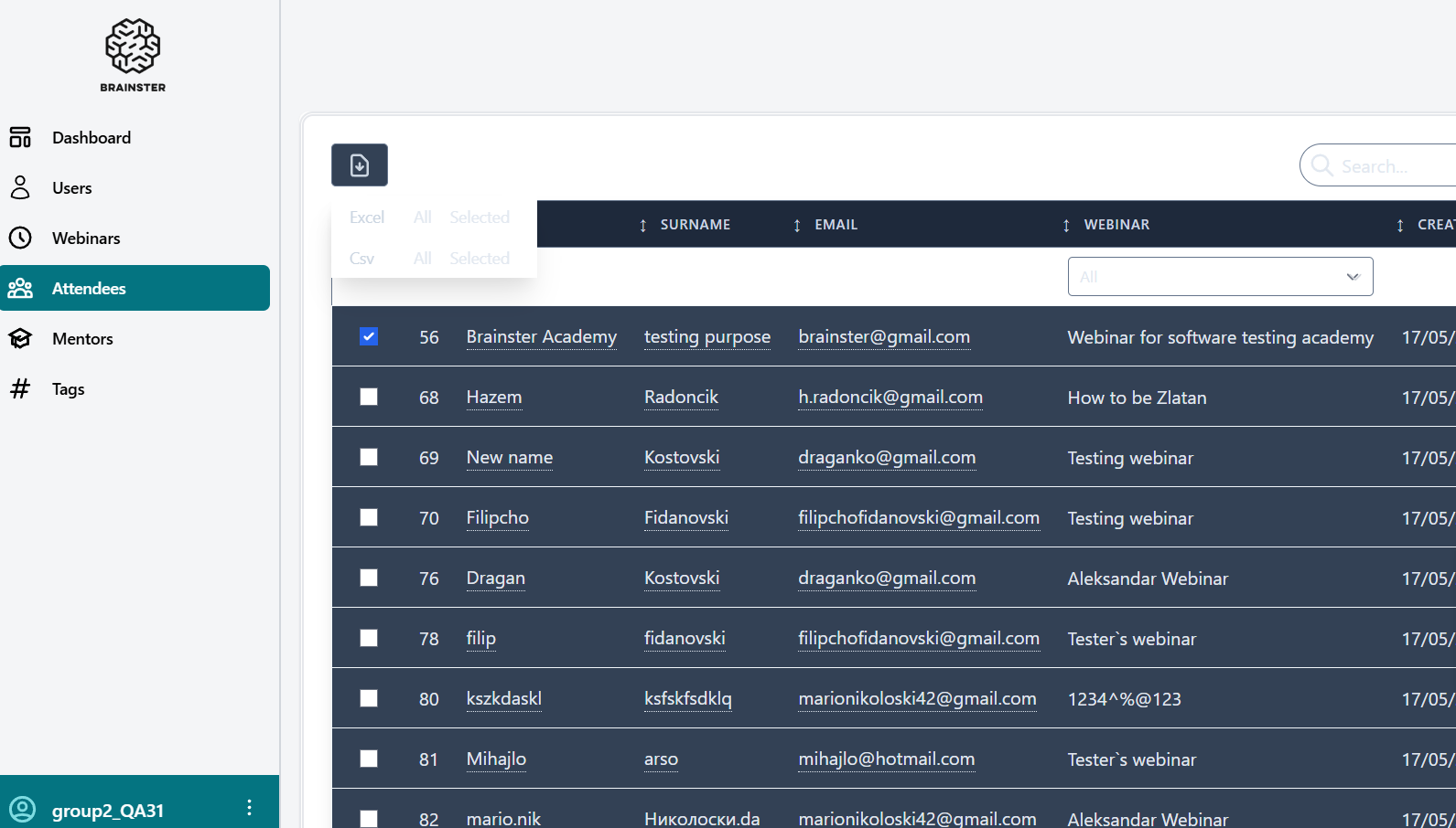 After clicking the 'Download' button, process should successfully proceed for already select attendees.
