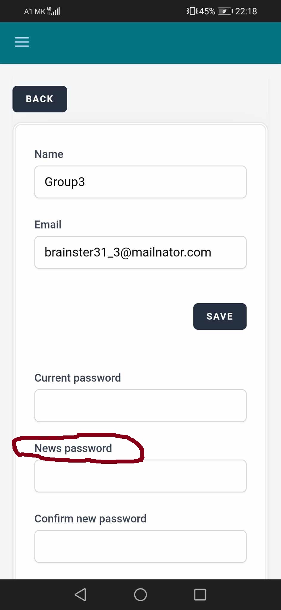 The label is misspelled as 'News password'