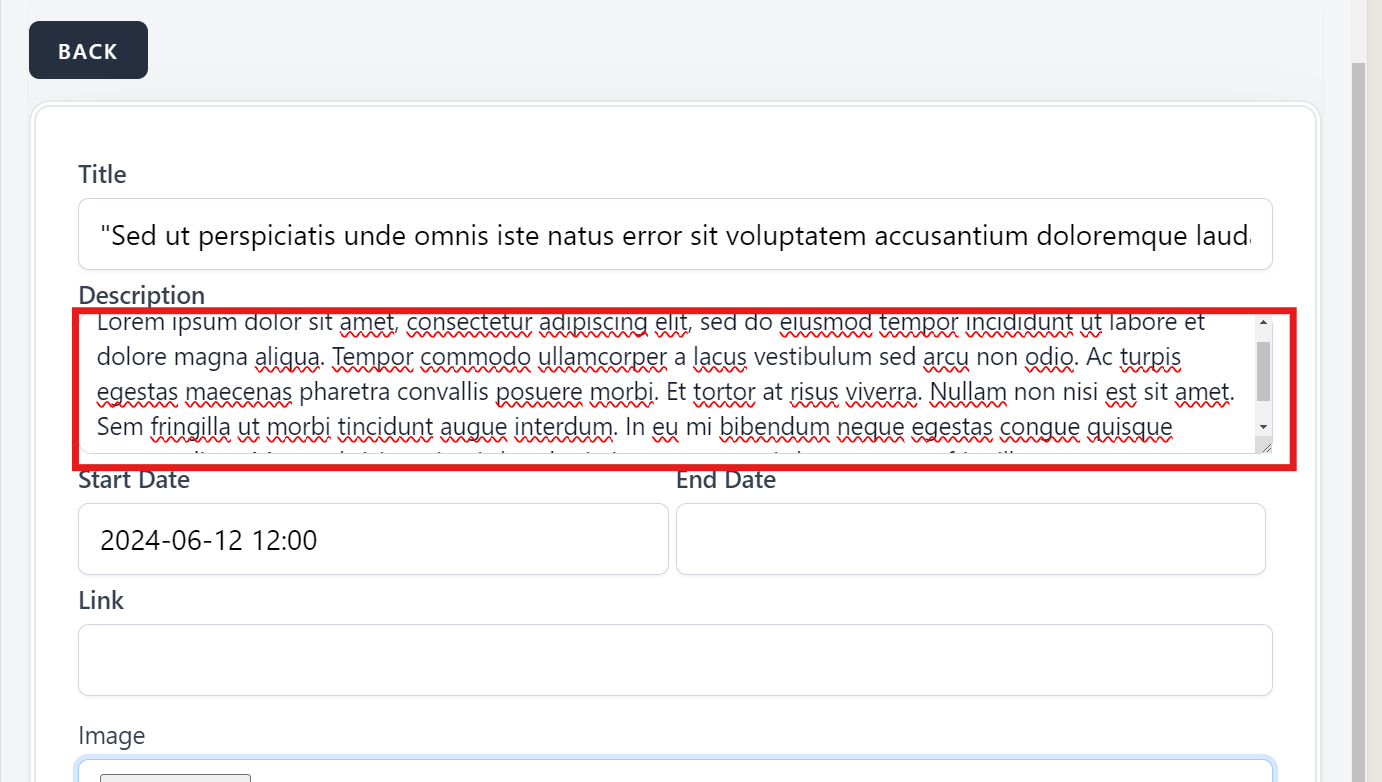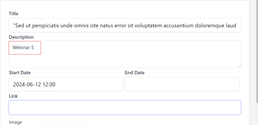 open[Webinars] The 'Description' field should not accept less than 10 characters and longer than 500 characters