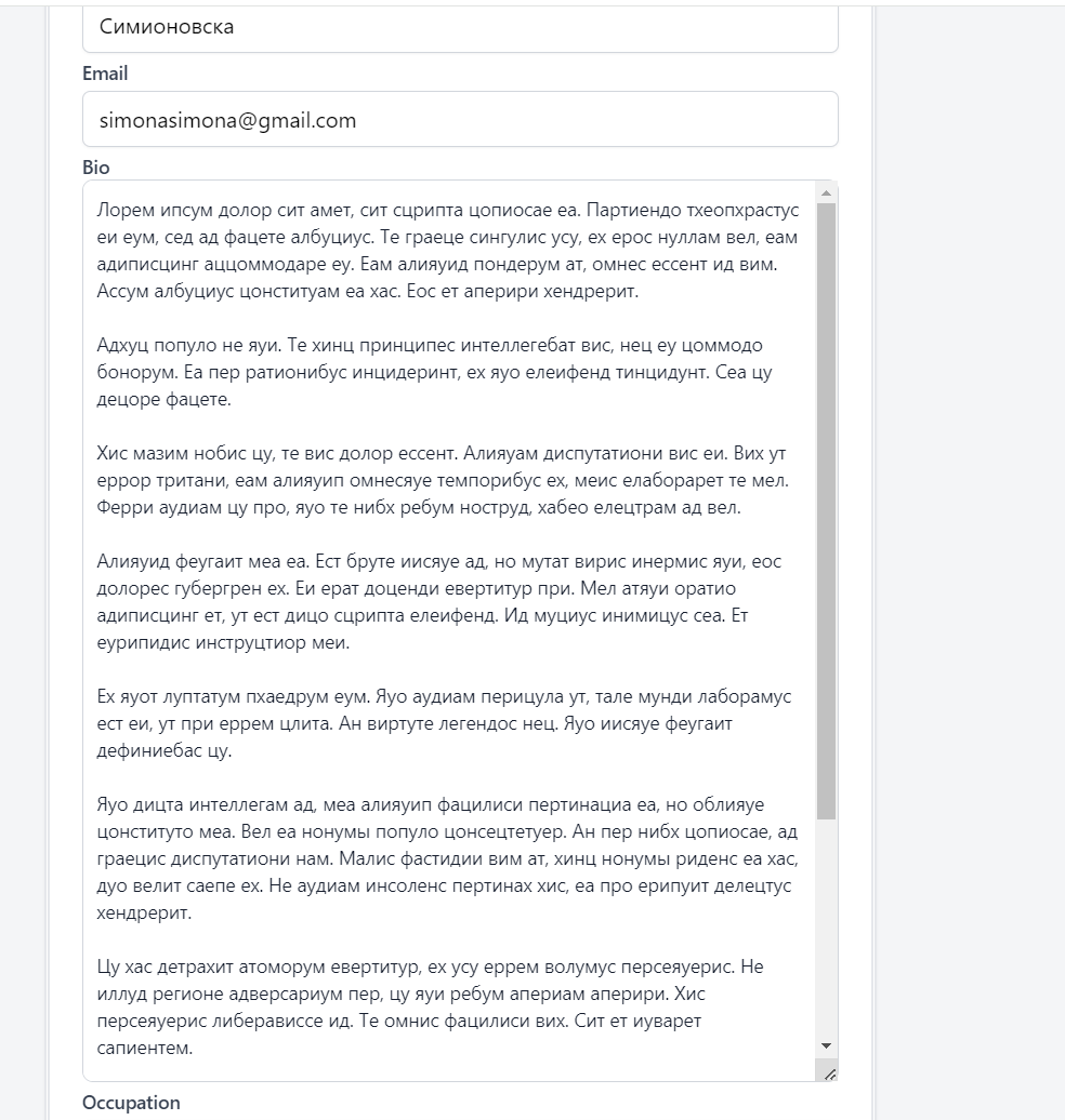 [Mentors] The 'bio' field accepts more than the maximum characters (both Latin and Cyrillic)