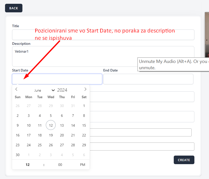 When we position the cursor in the Start Date field, a message should be showen that the filed is required with red letters