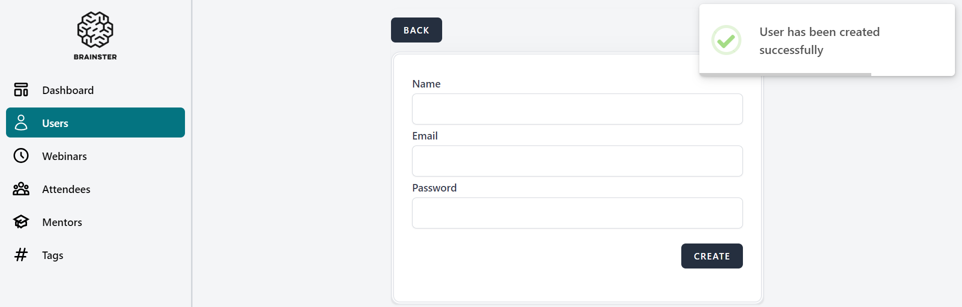 1. Click on the 'Users' from navigation menu
