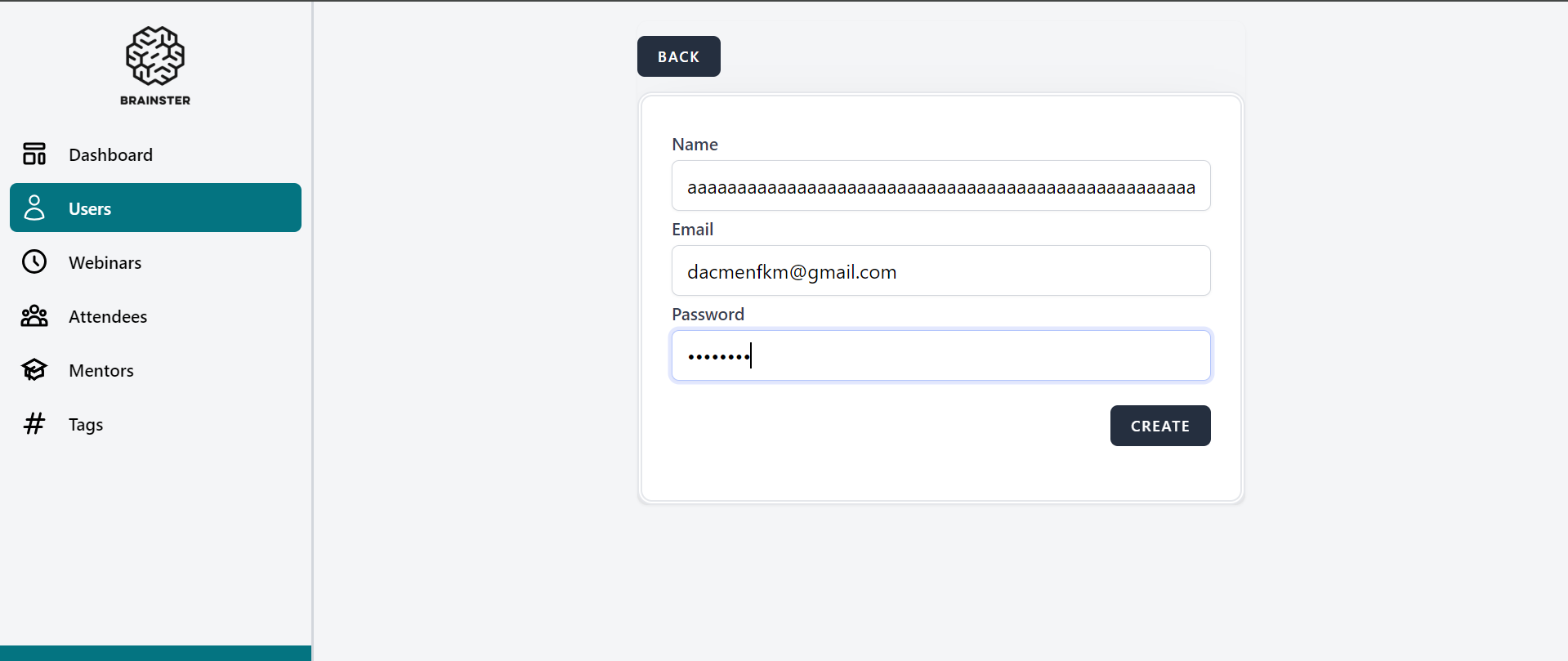 4. Fill in the ‘Name’ field with less than 3 characters or with more than 50 characters.