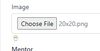 The user should not be able to select an image smaller than 200x200 pixels or bigger than 1000x1000 pixels. A validation message with red letters should pop up under the Image field