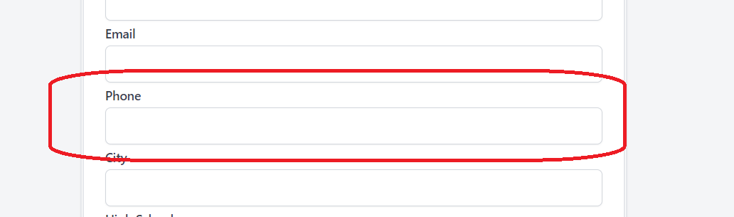 The example format for a phone should be shown next to or under the 'Phone' input field.