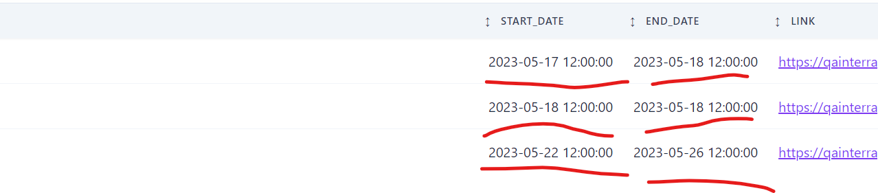 3. Observe the START DATE and END DATE columns in Webinars