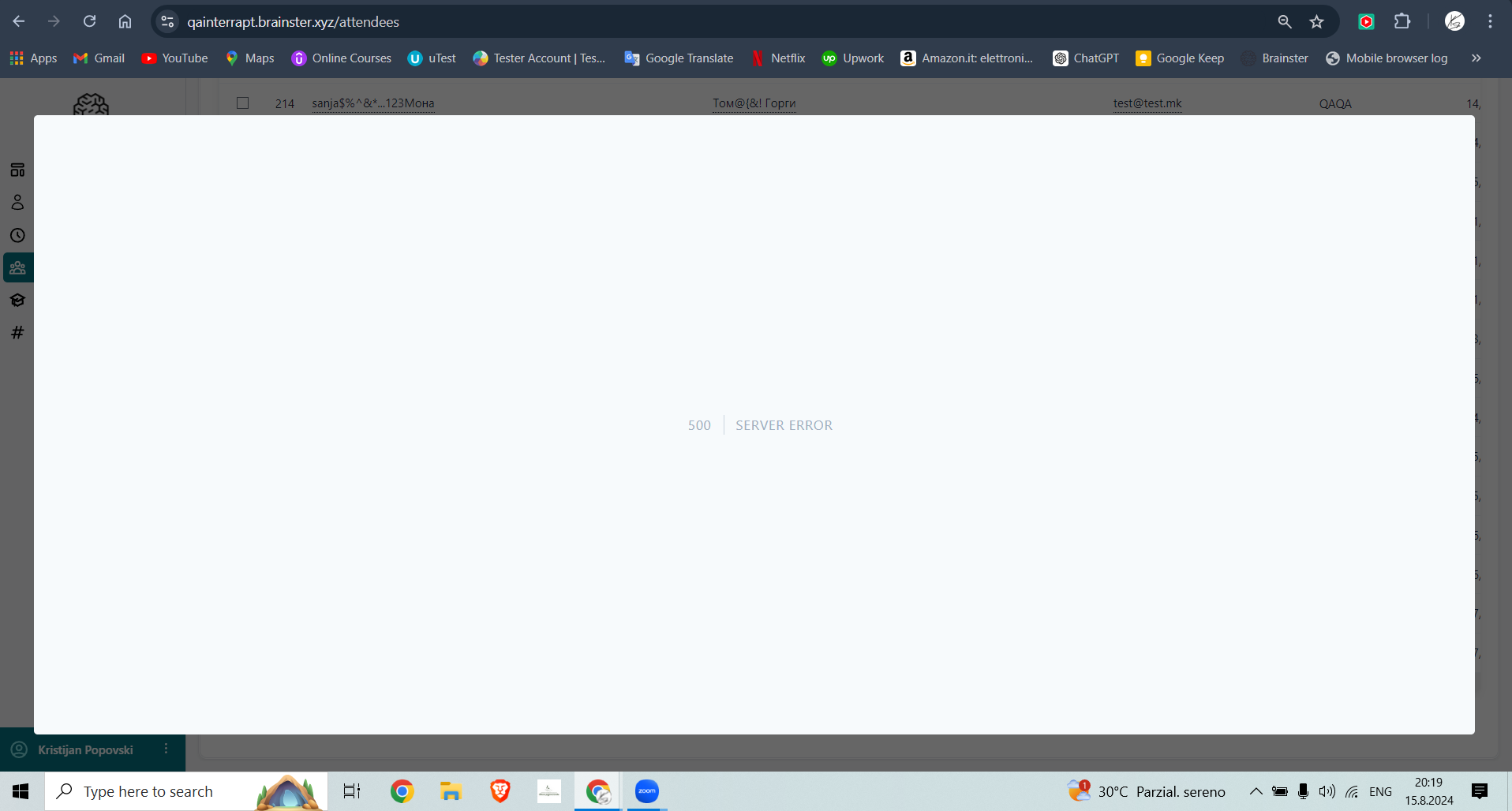 1. Open "https://qainterrapt.brainster.xyz/attendees"