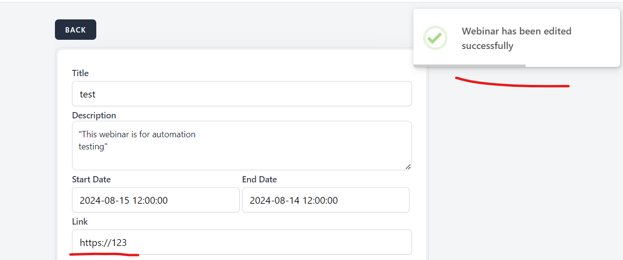 3. Click on edit button (in the form of a pencil symbol) on any Webinar