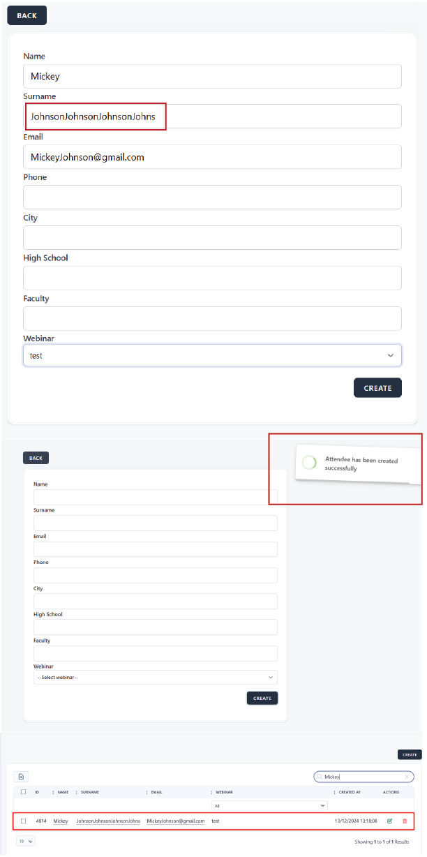open[Attendees] An attendee has been created with more than 25 characters in "SURNAME" input field.