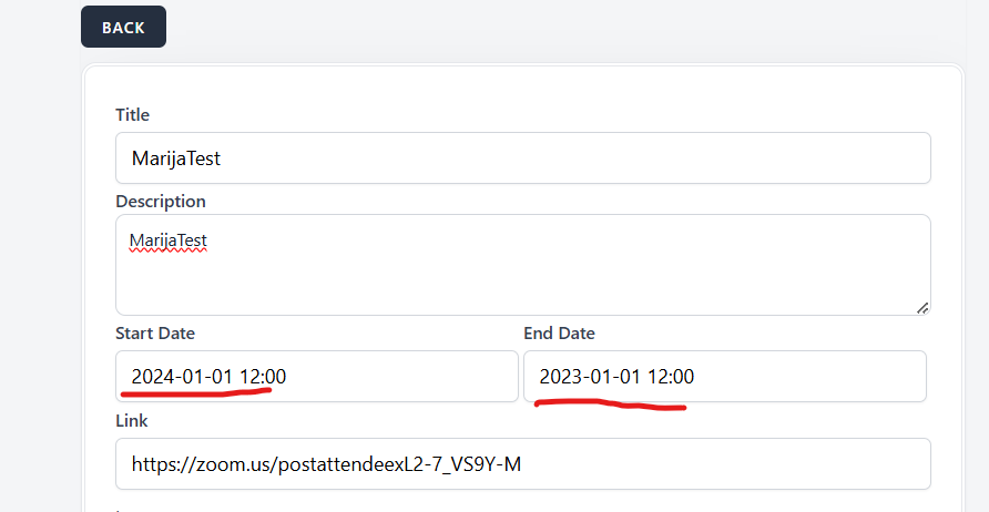 User is able to select Start Date of Webinar larger than End date.