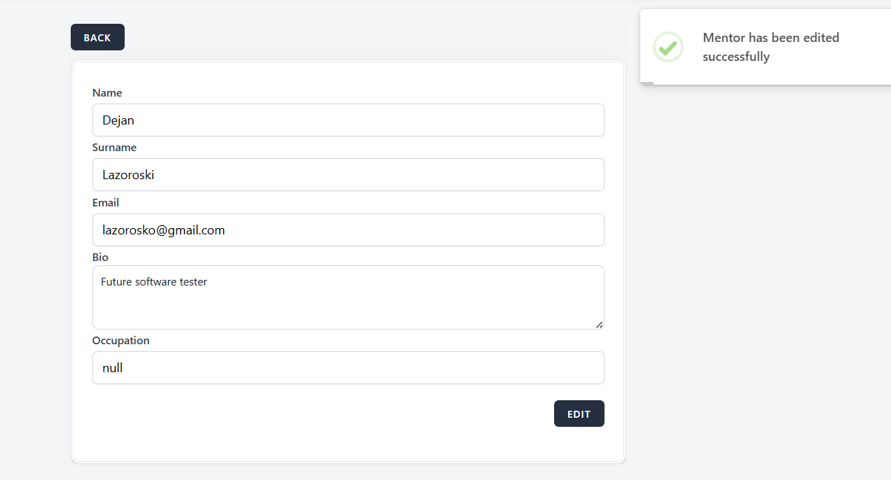 Entering Occupation inputs with with less than 5 and more than 25 characters with Latin and Cyrillic alphabet, allows you to add mentor