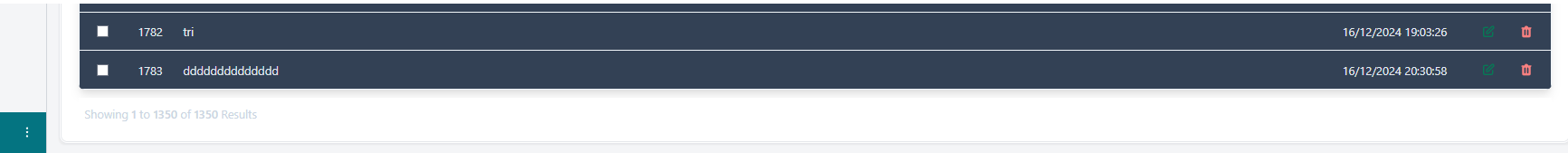 - Observe the behaviour of the items per page drop-down list.