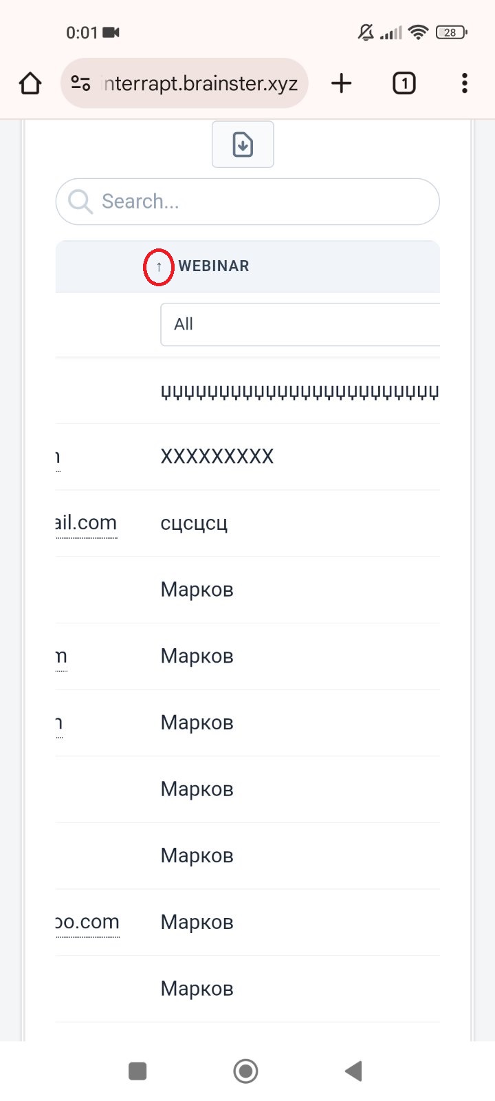 The user cannot sort the previously created attendees on the list by ascending and descending using the order sort button provided for the Webinar category