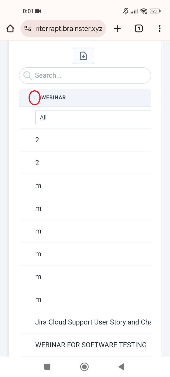 - Click on sort-order button for Webinar (for ascending)