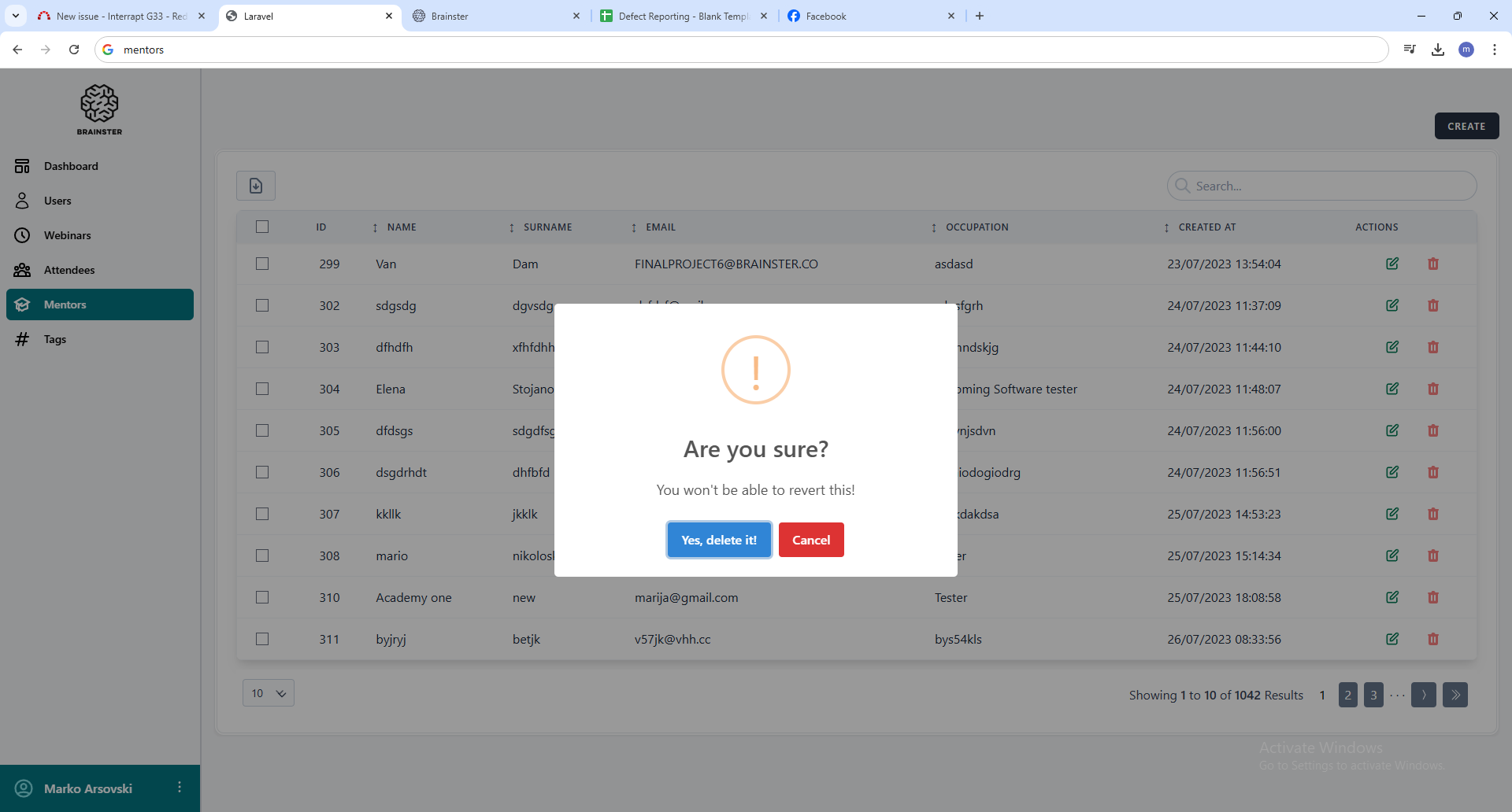 User is able do delete from the mentors list