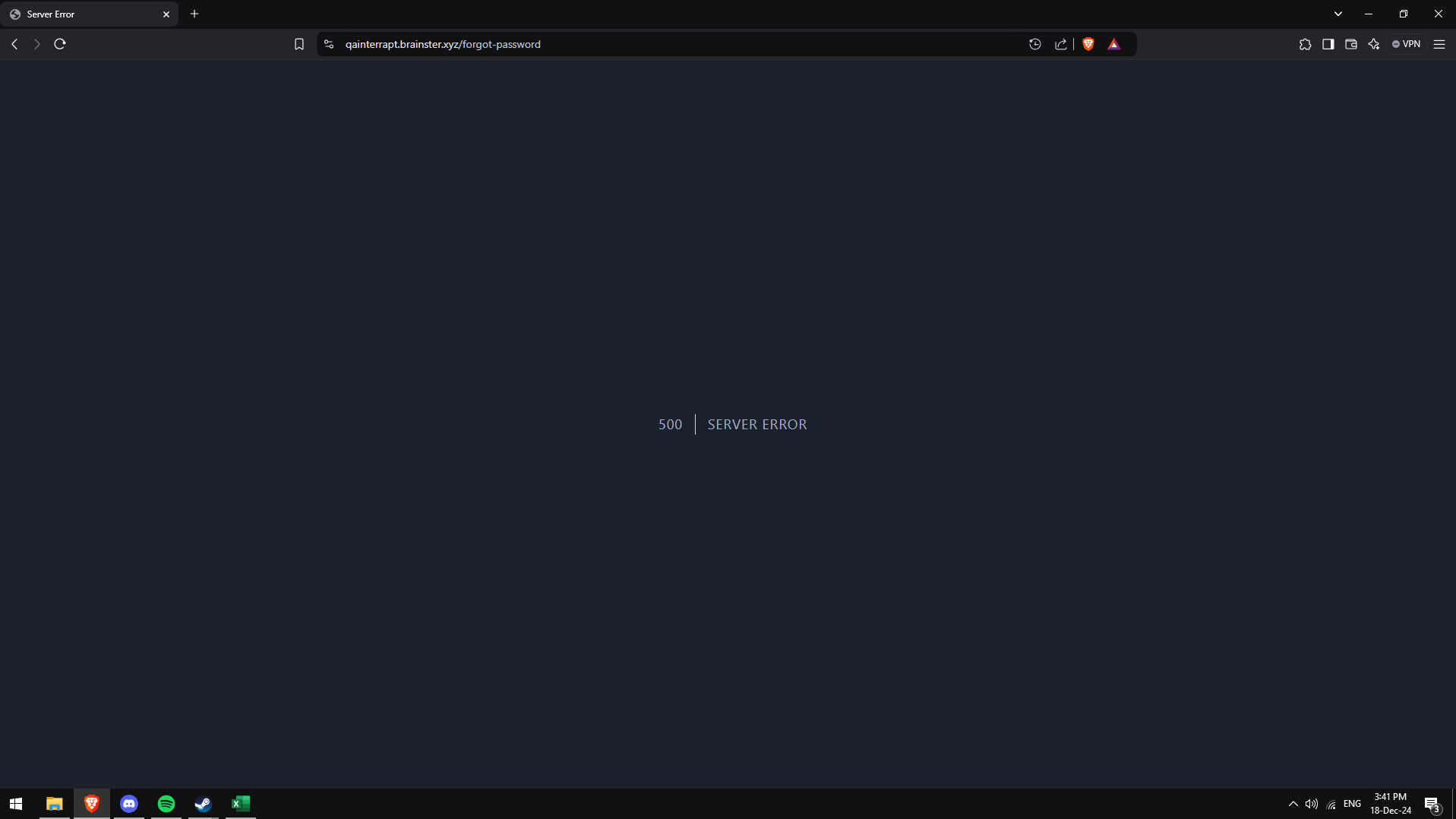 By clicking "Forgot your password?" button, filling the "Email" field and clicking "Email password reset link", the user sees a message "500 | SERVER ERROR" and does not receive an email to reset the password.