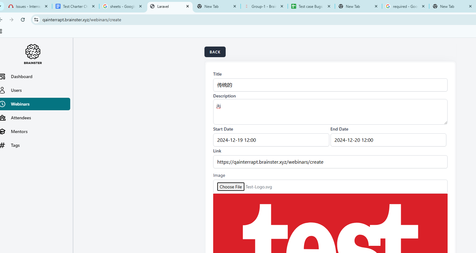 The user can create webinars even when he uses other fonts in the titlle field