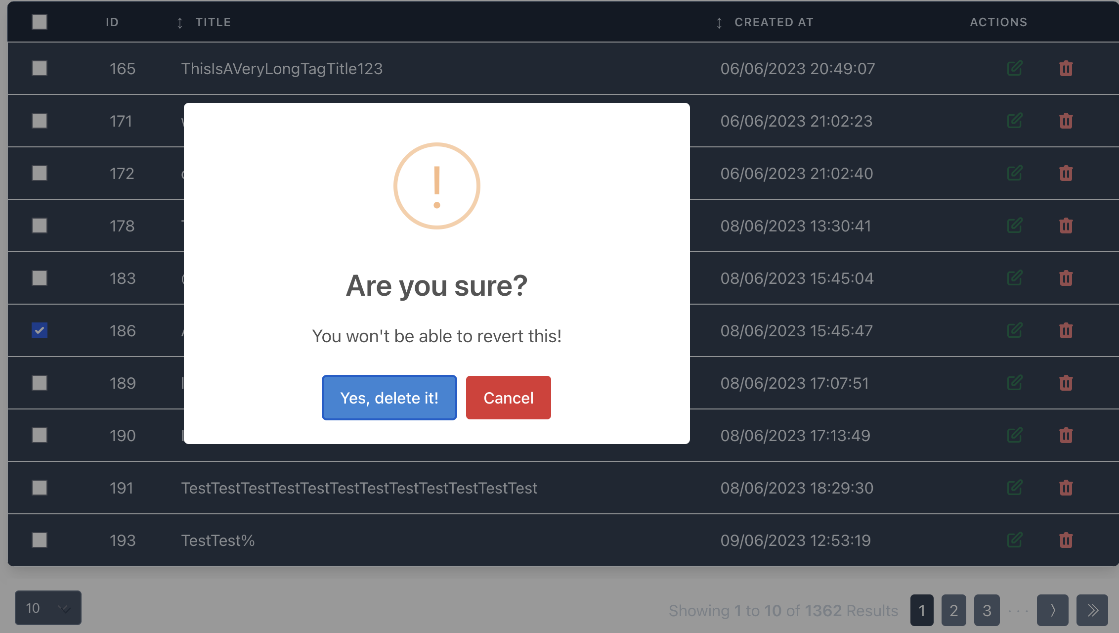 2. Locate a tag created by another user and click the "Delete" button next to it