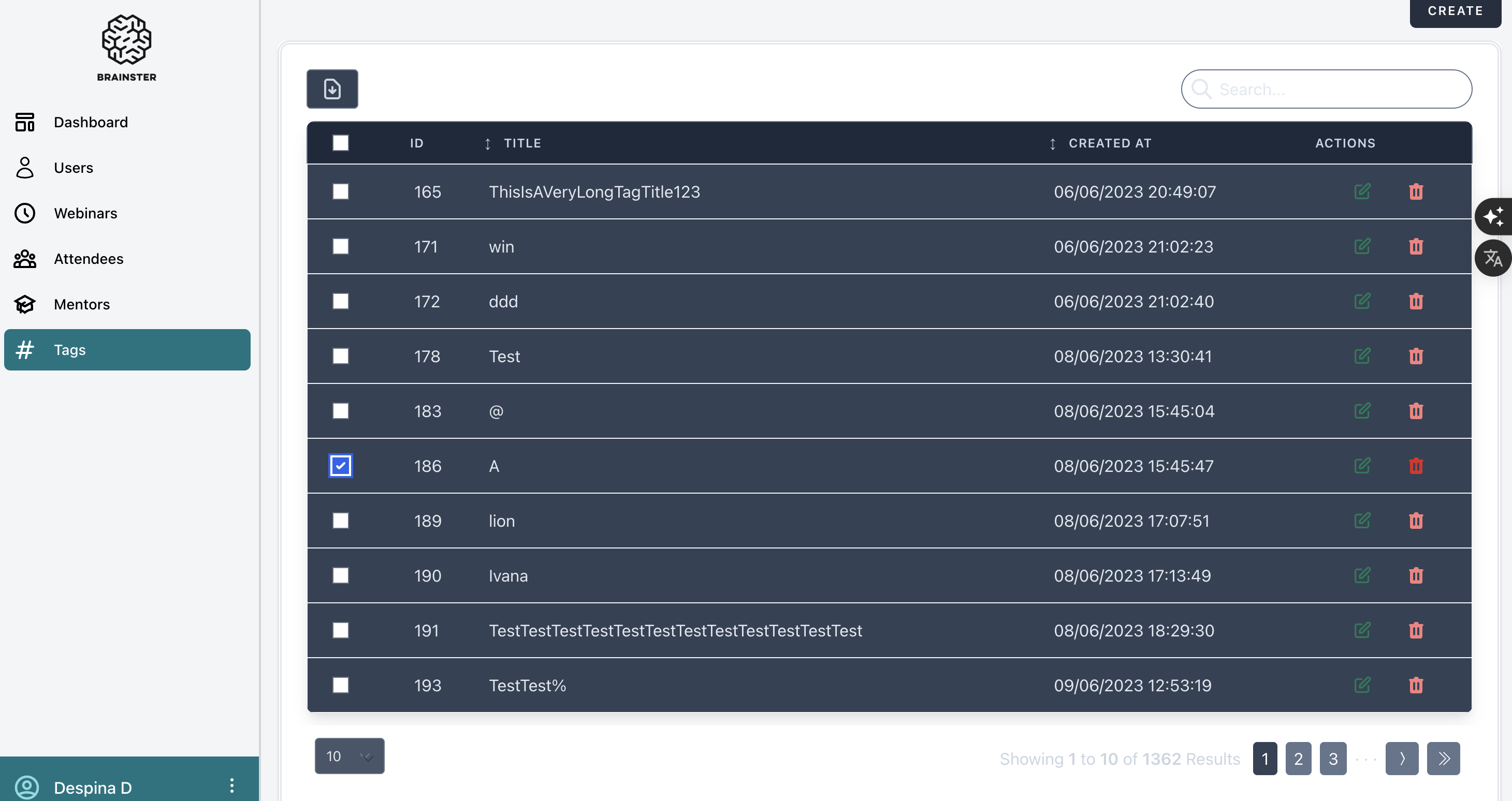 1. Navigate to the "Tags" section in the menu.