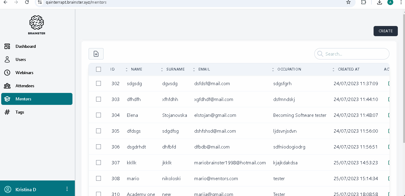 The user is logged in and there are existing mentor records in the system.