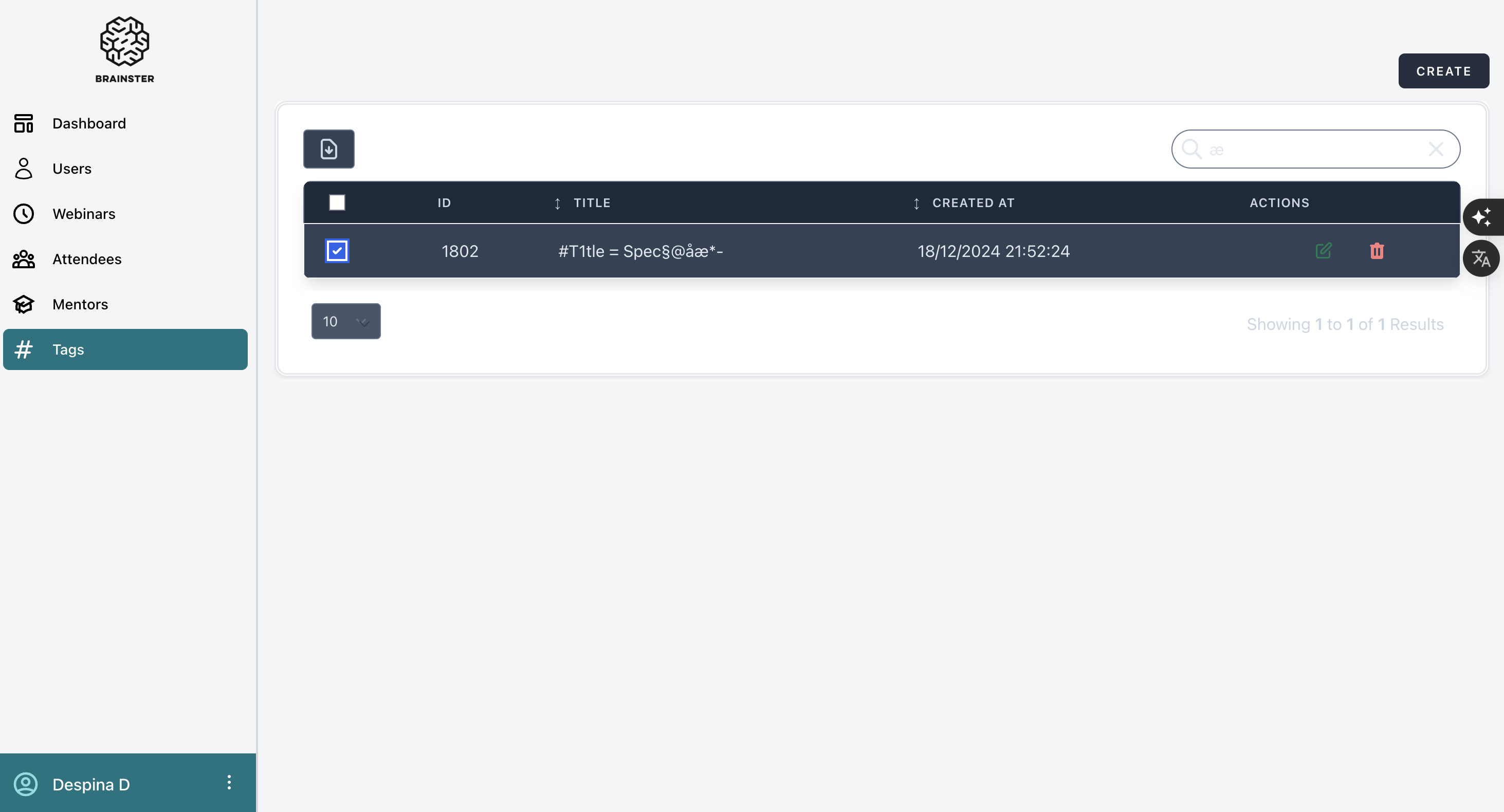 2. Click on the "CREATE" button located in the top-right corner.