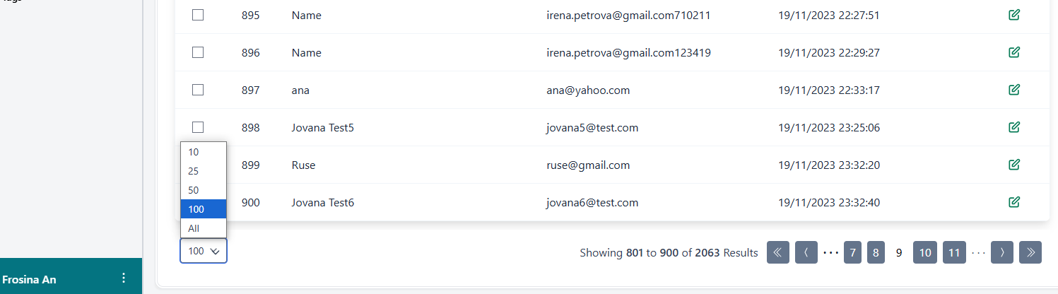 In the pagination functionality of the user list, users can select options to display 10, 25, 50, 100, or "All" records. However, once the "All" option is selected, there is no option to switch back to other pagination choices (e.g., 10, 25, etc.). The user must reload the page to regain control of the pagination.