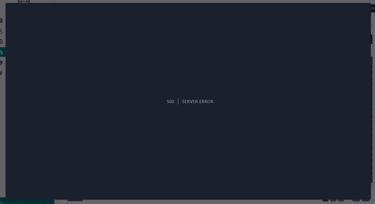 An error message is displayed "500| SERVER ERROR" and not exported