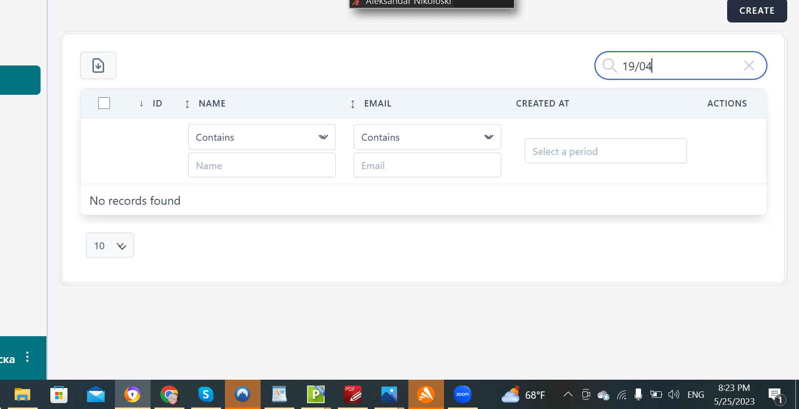 When searching for created User by date of creation the "Search" functionality is not giving data back