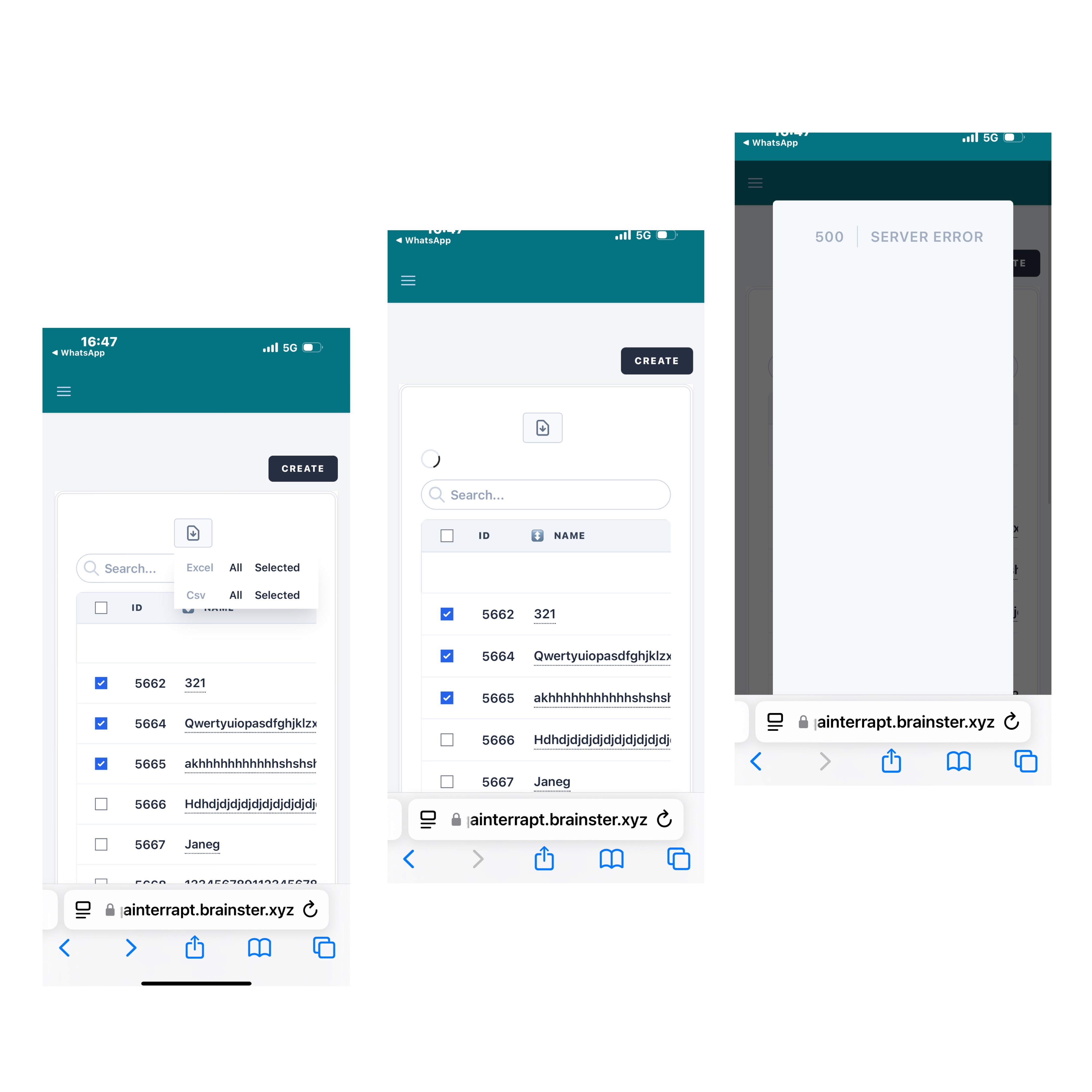When trying to select from three to five atendees and export it to an Excell sheet on mobile view, then 500 Internal Server Error page is displayed.