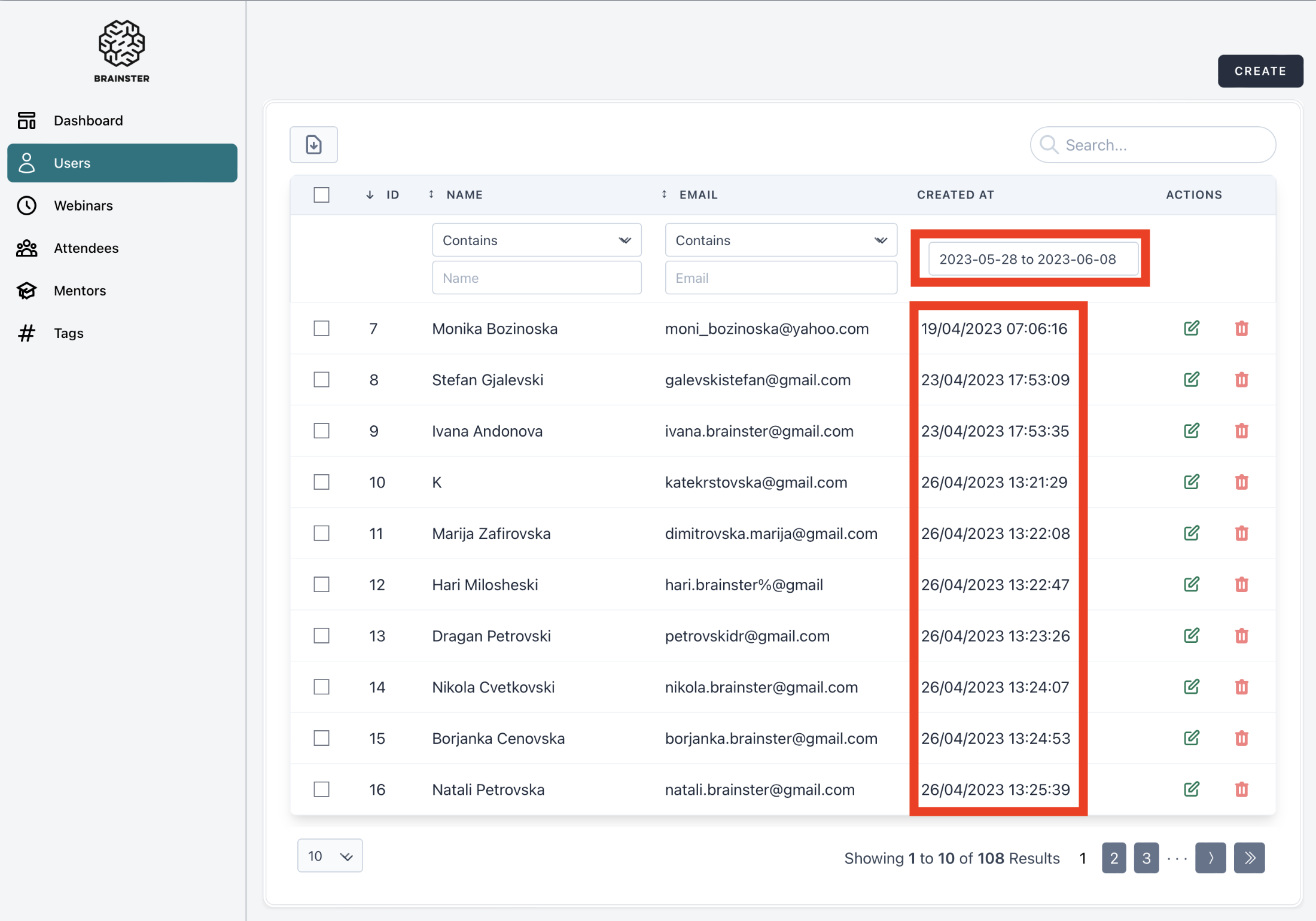 open[Users] The user is unable to search “Users” by “CREATED AT”