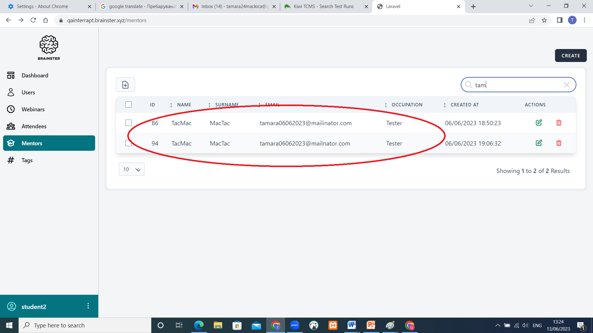 - Expected result - User should not be able created duplicate mentors with using same email address