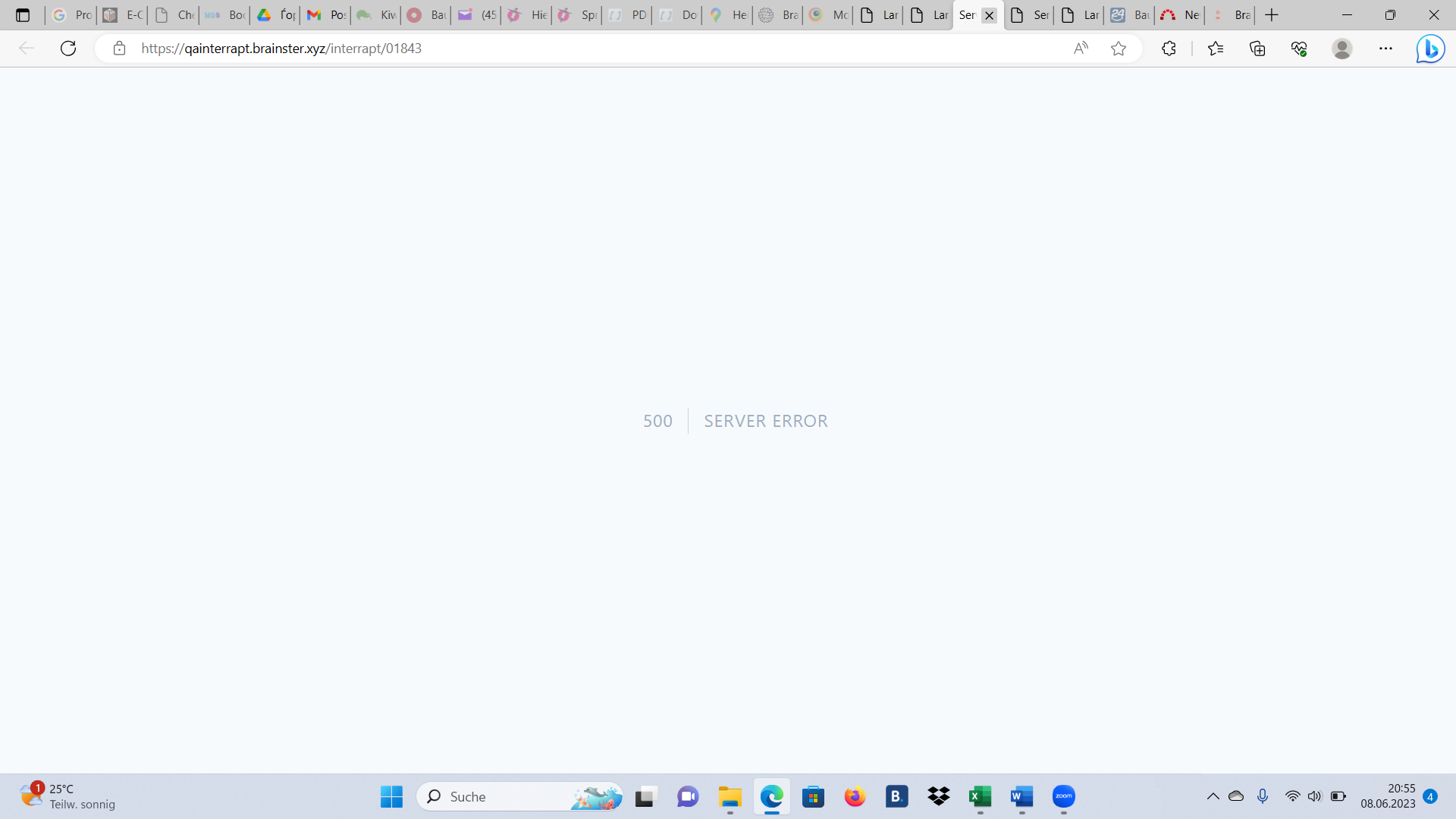Server Error Window is showing. No login possible.