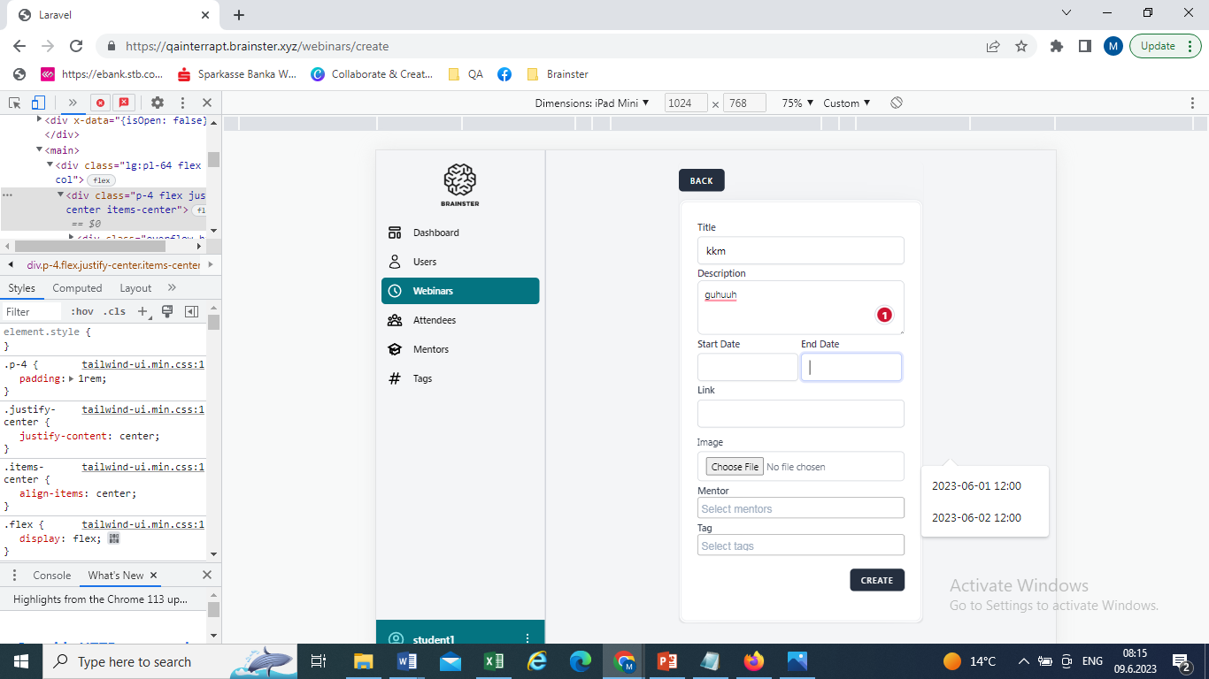 When creating a webinar, the date pickers in End-date disappear whenever a character is entered in the title field