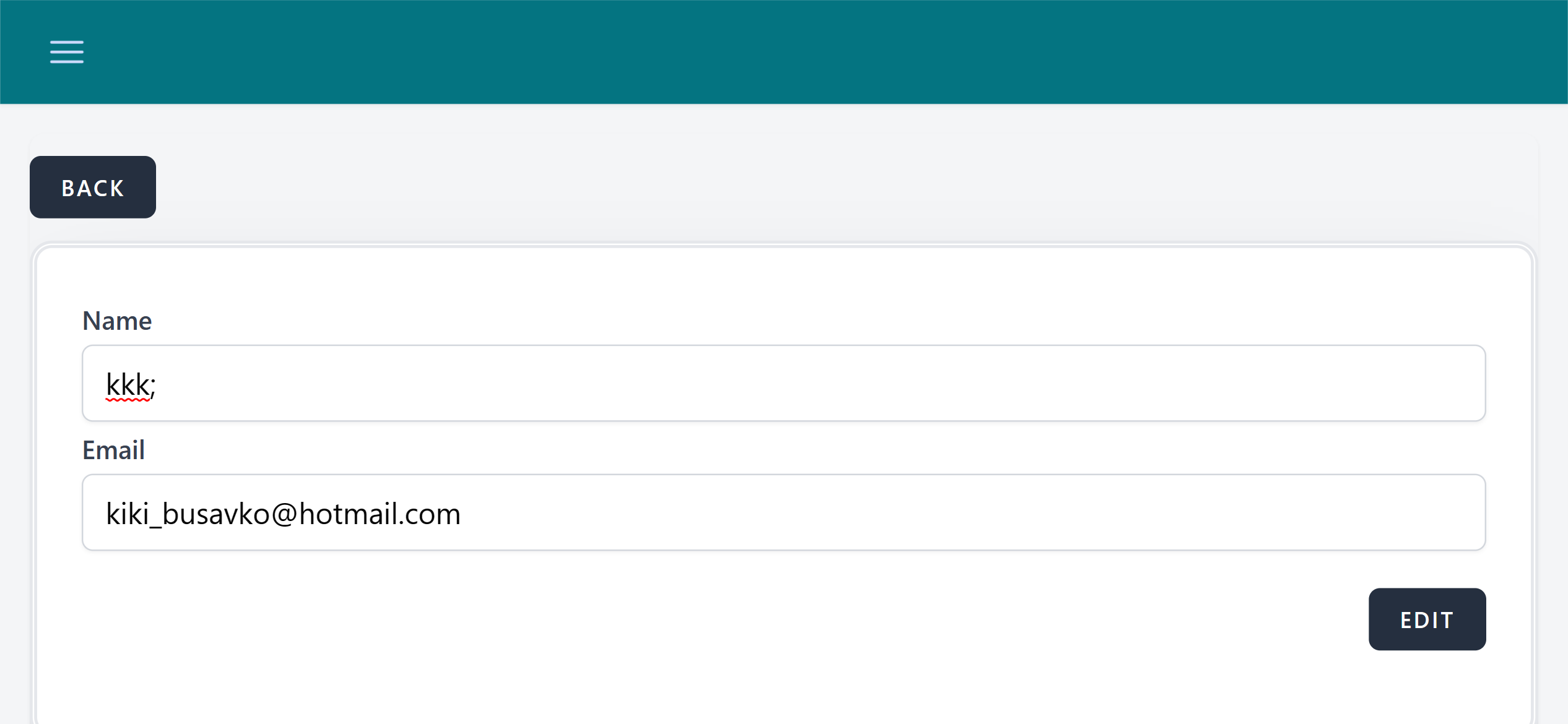 The user should not be able to edit the user with different characters than “-” and “ . ” in first name. An error message should be shown