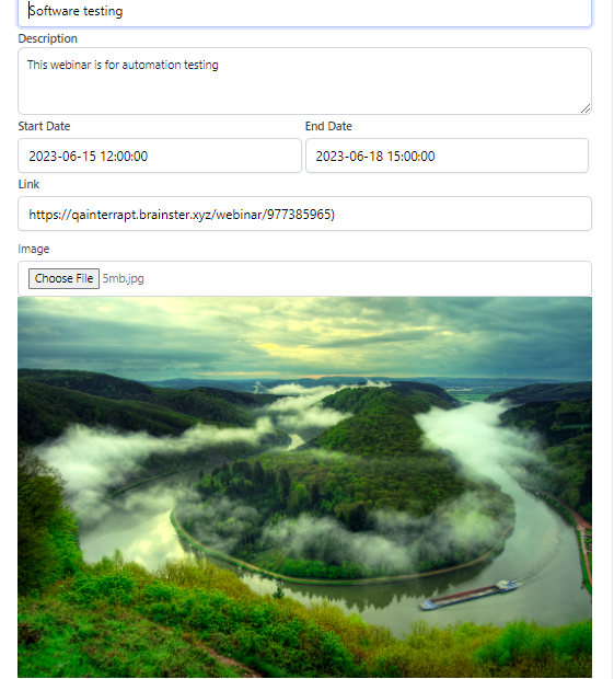 - Subject changed from [Webinar menu] User is able to input image with file size larger than 5 MB in image field to [Webinar] User is able to input image with file size larger than 5 MB in image field
