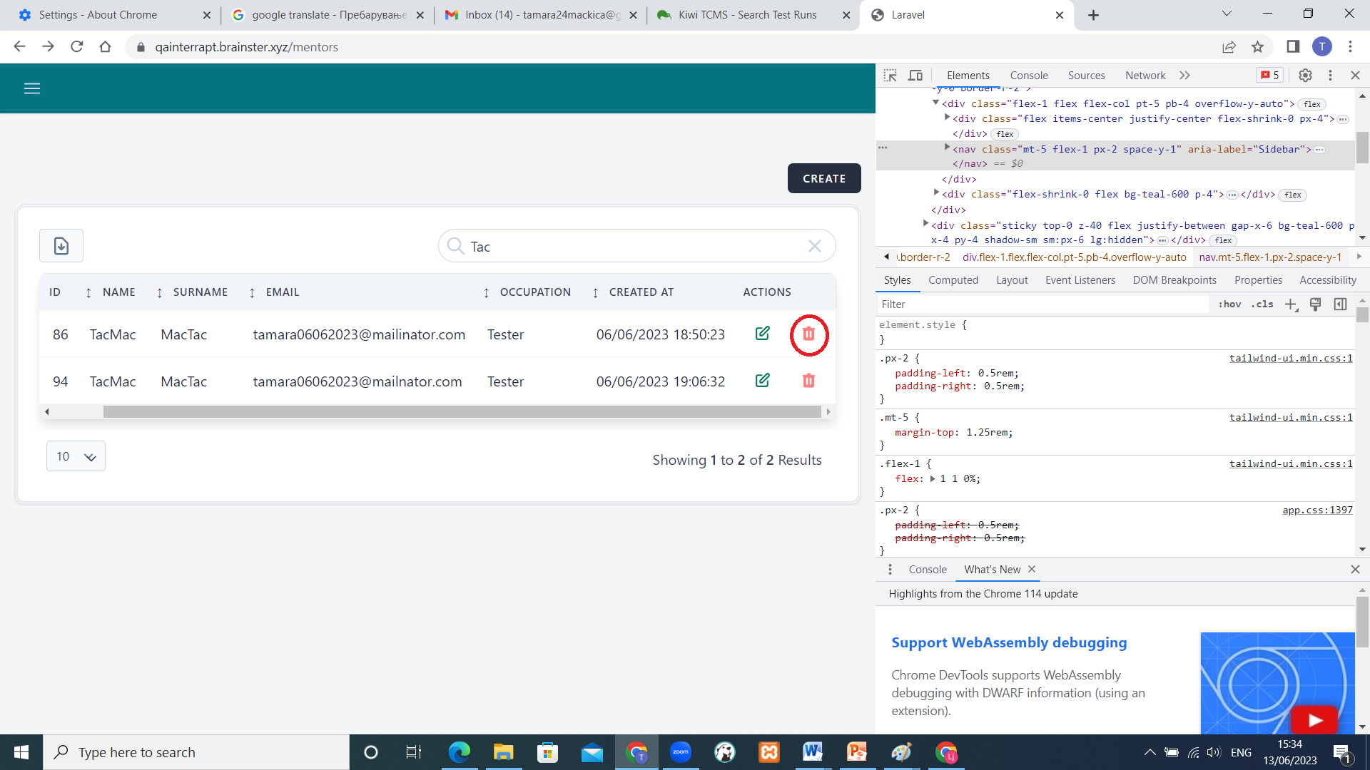 User with inappropriate permission should not be able to delete mentors - Actual result