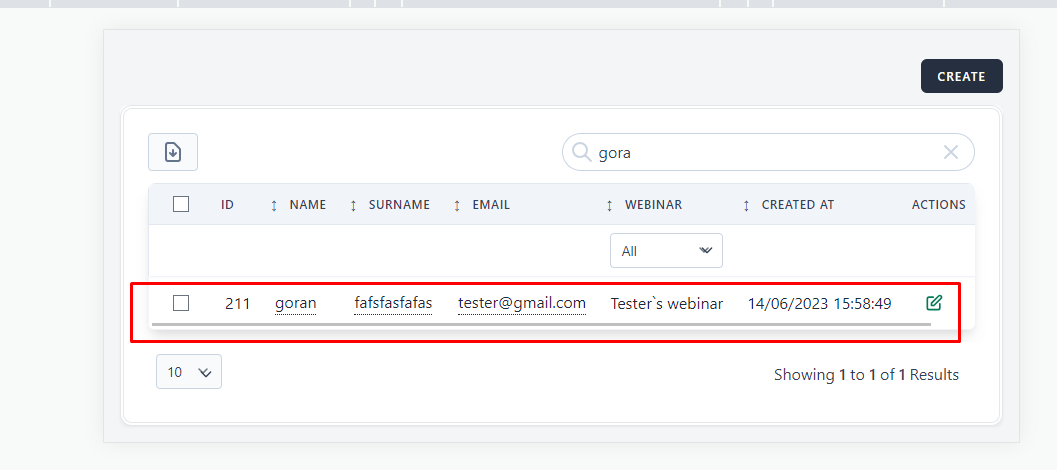5. In the top right corner click the Create button