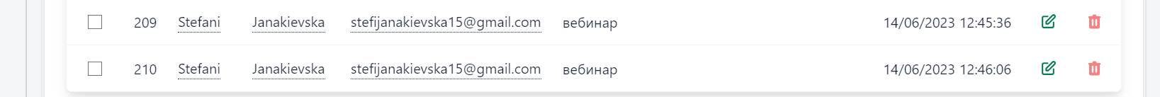 15.Click on create on the top right corner and input all the same information as the previous attendee