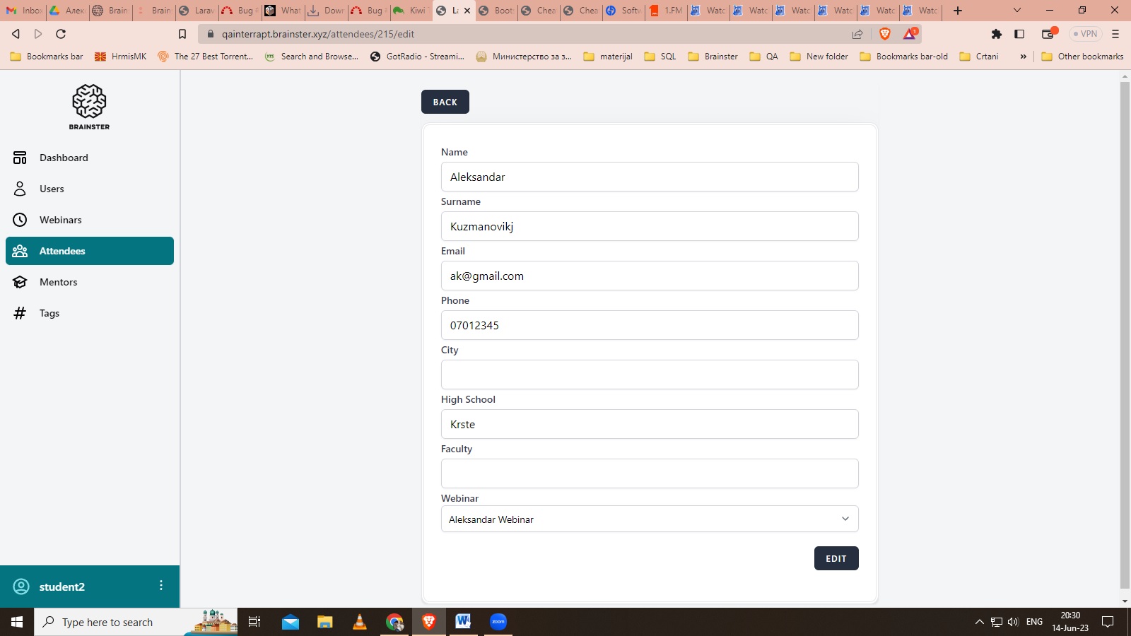 open( Attendees) User is able to input name of High School with less then 10 characters, which should be minimum 10 and maximum 50 characters in length.